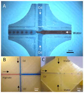 In collaboration with our colleagues Phil Stephens and Bing Song, we show the potential use of droplet microfluidics to encapsulate stem cells in droplet capsules. This technology enables scientists to culture cells in three-dimensional structures and create synthetic materials both supporting and protecting encapsulated cells. Such technology is expected to find use in regenerative medicine and tissue repair.